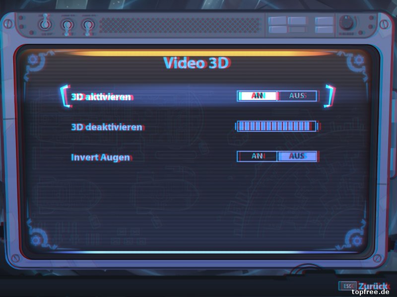 Nach dem Spielstart können im Optionsmenü zahlreiche Einstellungen vorgenommen werden. Neben den diversen Grafikeinstellungen ist „PuA“ auch im Fenstermodus spielbar. Zudem gibt es einen 3D-Modus für die klassische 3D-Brille (rot/blau). Der Effekt ist ganz witzig, ist aber nichts für eine lange Spieldauer, da dies die Augen doch recht anstrengt. Daneben sind noch Steuerungs- sowie diverse Toneinstellungen möglich. Das Spiel ist komplett, inklusive Sprecher, auf Deutsch vertont worden.