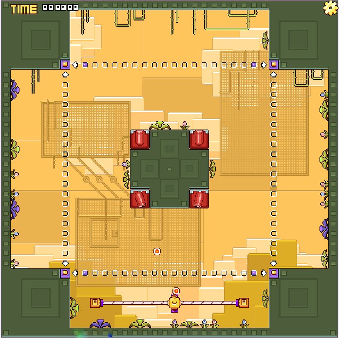 Also der Spielkopf wird mit den Pfeiltasten gesteuert. Links oder rechts beziehungsweiße hoch unter runter gedrückt, ändert die Richtung. Danach hängt das gelbe Viereck am Seil und kann dort wiederum mit den Pfeiltasten entlang bewegt werden. Allerdings behindern zahlreiche Hindernisse das Fortkommen. Sind die ersten Level noch recht simpel, steigert sich der Schwierigkeitsgrad im weiteren Spielverlauf (erheblich). Bomben und Co. bedrohnen den kleinen Grinsekopf. Grafisch ist das Spiel klasse umgesetzt. Die Pixeloptik ist passend.
