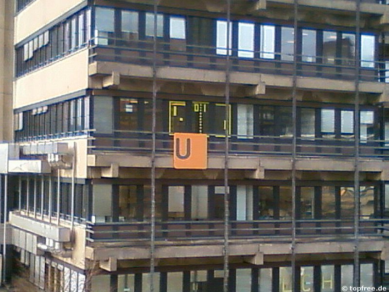 Eine Spielerei? Zumindest eine Wandspielerei. An der Universität in Wuppertal, der Bergischen Uni, am Gebäude U des Hauptcampus ein analoges Pongfeld. Der Spielstand blieb allerdings starr…
