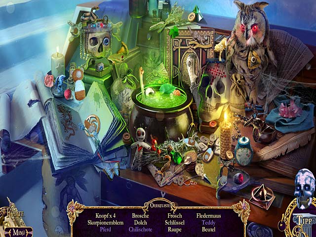 Doch zunächst kann man sich einen von vier Modi aussuchen, wobei es diesmal keinen gibt, den man selber konfigurieren kann. Sie unterscheiden sich lediglich zwischen Funkeln und Nicht-Funkeln, Tipp oder kein Tipp etc. Die Grafik ist gut gelungen, allerdings finde ich, dass die Mutter am Anfang eher böse aussieht. Dennoch hat man sehr Detailverliebt gearbeitet, um eine mystische Atmosphäre zu schaffen. Einige Handlungen sind aber etwas unlogisch. So muss der Spieler recht am Anfang ein vollgelaufenes Boot mit einem Kelch leeren, wohingegen Princess kurz darauf ihre Zauberkräfte vorführt. Auch haben wir einen Dolch im Inventar, der verzauberte Gegenstände befreit, aber zudem auch einfache Blätter, die im Boot sind…Hä?!