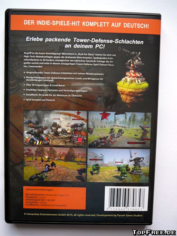 Ein neues Tower Defense Spiel ist auf dem Markt. Immanitas Entertainment hat das Indiespiel „Rush for Glory“ von Parseh Game Studios in den Handel gebracht. Es ist das erste kommerzielle Spiel des 2011 gegründeten Entwicklerteams, dass sich auf Casual Games spezialisiert hat. Komplett in Deutsch lokalisiert ist „Rush for Glory“ jetzt im Handel. „Das Tower-Defense-Spektakel für den PC!“, lautet die Ankündigung auf der Verpackung. TopFree.de hat das Spiel unter die Lupe genommen und zahlreiche Schlachten geschlagen. Mit viel Spielspaß!