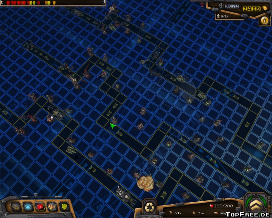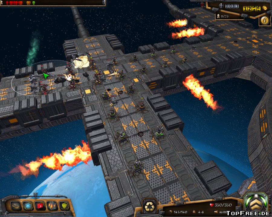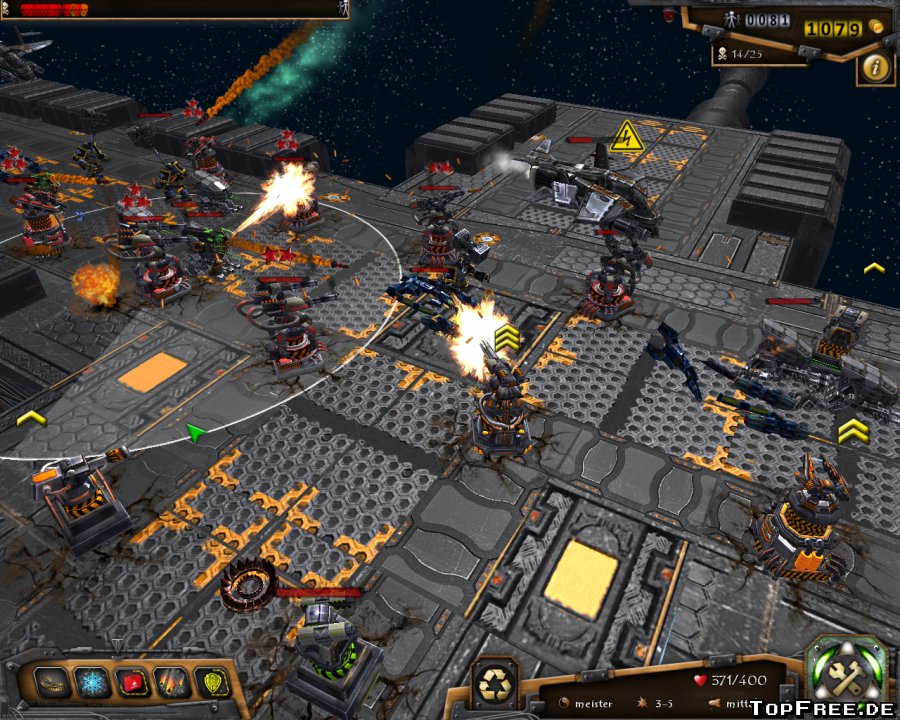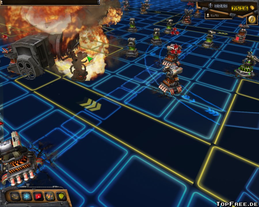 Das Spielprinzip orientiert sich natürlich an dem klassischen Tower Defense System. Eine Horde von Gegnern marschiert auf dem vorgegebenen Weg und versucht bis zur eigenen Basis vorzudringen. Hier sind es die Einwohner, die vor den mechartigen Gegnern durch die Waffentürme geschützt werden müssen.