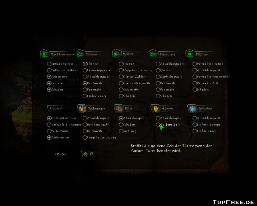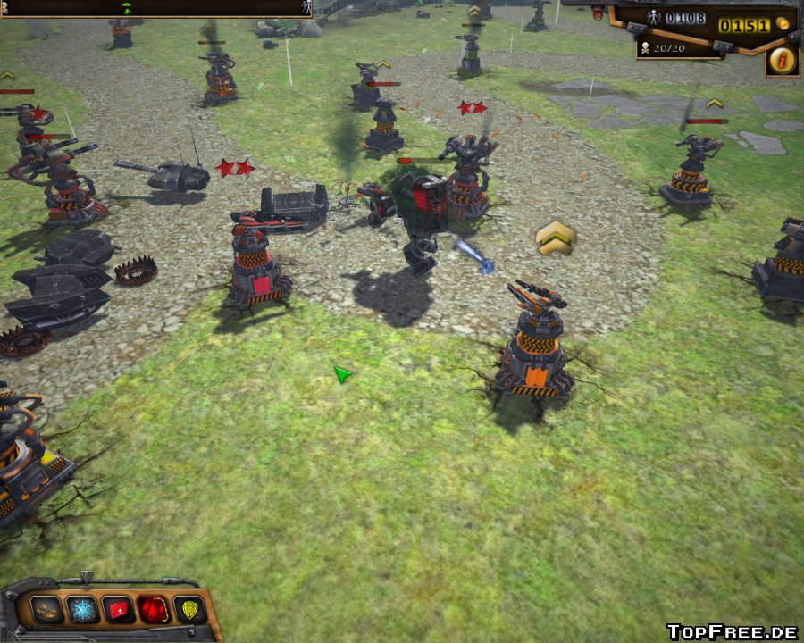 Als Türme stehen im Laufe des Spiels das Maschinengewehr, Snower, Mörser, Flighter und Bodenlava für den Spieler zum Platzieren bereit. Die Gegner rücken nach und nach mit 30 verschiedenen Arten und diversen Bossgegner an. Türme werden neben dem Weg der gegnerischen Einheiten aufgestellt, wobei immer der Radius und die Möglichkeit des Platzierens mit angezeigt wird. Innerhalb des Spiels gibt es die Möglichkeit Türme zu verbessern. Gesteuert wird komplett mit der Maus, sowie zur Vereinfachung den Hot-Keys, die ebenfalls in der Enzyklopädie ausführlich aufgezeigt werden. Sechs Upgradestufen sind für jeden Turm im Spiel vorhanden. Je nach Geld und Erfahrung sind Türme je nach abgegebenen Schüssen aufrüstbar. Zusätzlich gibt es noch das interne Upgradesystem. Erhält man nach einer (sehr) erfolgreichen Schlacht einen Stern, kann dieser für verschiedene Upgrades eingesetzt werden.