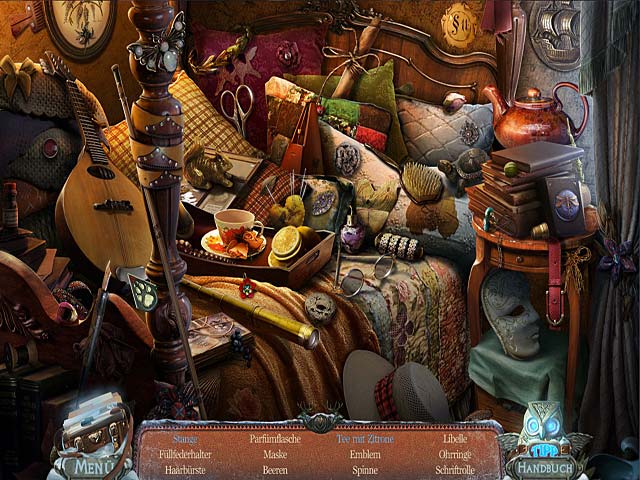 Die Wimmelbildobjekte werden anhand von Bildern und von Listen gesucht, da die Szenen doch recht „zugemüllt“ sind, ist es für erfahrene Spieler hin und wieder doch recht kniffelig. Der zweite Wimmelbildmodus ist das zurücklegen. Du hast ein Inventar voller Objekte, die in die Szene eingefügt werden müssen. Hast du den Teil abgeschlossen, wird sich eine Schatulle, eine Schublade oder ähnliches öffnen und du kannst dein Inventarobjekt entnehmen.