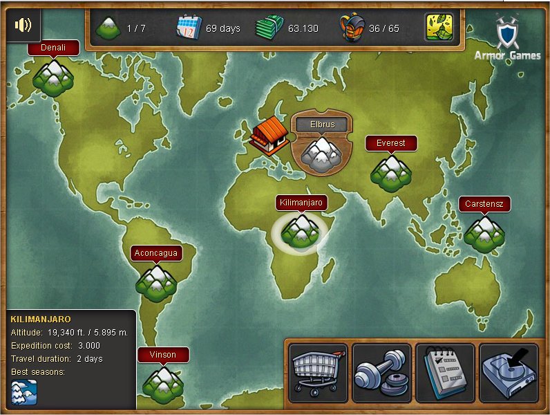 Fazit: Seven Summits ist für ein Flashspiel genial. Eine Simulation, die auch noch Spaß macht, findet man heutzutage ja doch recht selten in der Flut des Genres. Eine Bergsteigersimulation kannte ich noch nicht. Nur mit der richtigen Taktik schafft man es in diesem Spiel auch wirklich alle der sieben höchsten Berge zu erklimmen.
