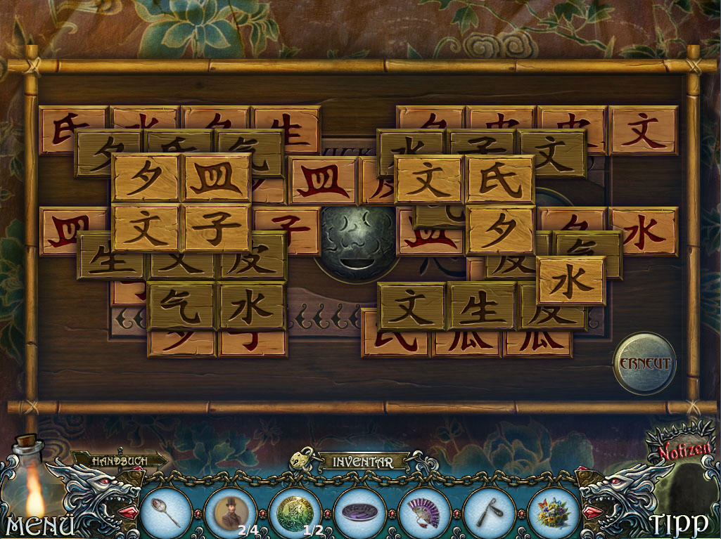 Man reist halt nach Paris und erkundet einige Orte, die man, wie ich finde ganz gut „abklappern“ kann. Es kommt einem nicht extrem vor, dass man übermäßig viel hin- und herlaufen muss. Was einerseits Spaß macht, aber andererseits nervt war, ist, dass man echt viel zutun hat. Also, Inventar einkassieren und benutzen und manchmal wusste ich halt echt nicht, wie es weitergeht. Der Tipp-Button hilft einem bei diesem Spiel nämlich nicht weiter. Er hilft in Wimmelbildszenen und in Szenen wo etwas zutun ist. Weiß man aber mal nicht weiter oder ist an einen Ort gelangt, wo man nicht mehr weiter weiß, kommt nur ein „Hier rumstehen bringt dich auch nicht weiter“ oder „Schau doch mal woanders“ .. Hmm… Jau…dann heißt es doch, Laufschuhe an und überlegen, wo man vielleicht doch noch etwas vergessen hat oder mal einen Blick in die Cheats riskieren. Kluge Pro-Wimmelbild-Gamer haben damit aber bestimmt keine Probleme. Wohlgemerkt, es war der einfache Modus! Außerdem fand ich die Wimmelbildszenen „knackig“, da die Szenen ziemlich vollgestellt aussehen, findet man so einige Gegenstände aus der Wortliste tatsächlich nicht auf Anhieb. Rote Wörter lassen sich durch z.B. verschieben oder durch Öffnen eines Gegenstands der Szenen entnehmen!