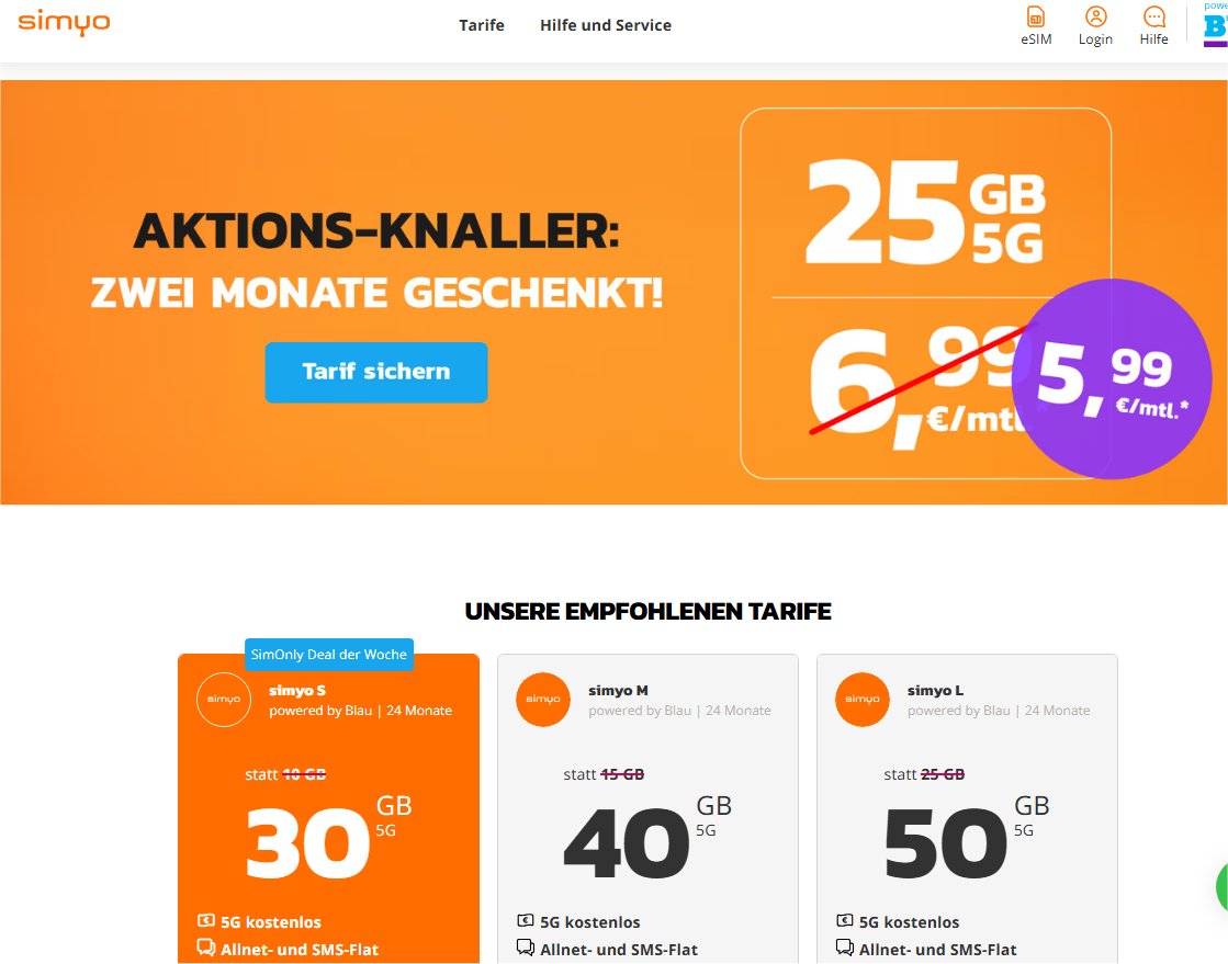 Es ist der 1. Juli 2025 und es gibt abermals Tarifänderungen bei der Mobilfunkmarke simyo (powered by Blau). Erst vor einem Monat gab es eine neue Tarifstruktur.