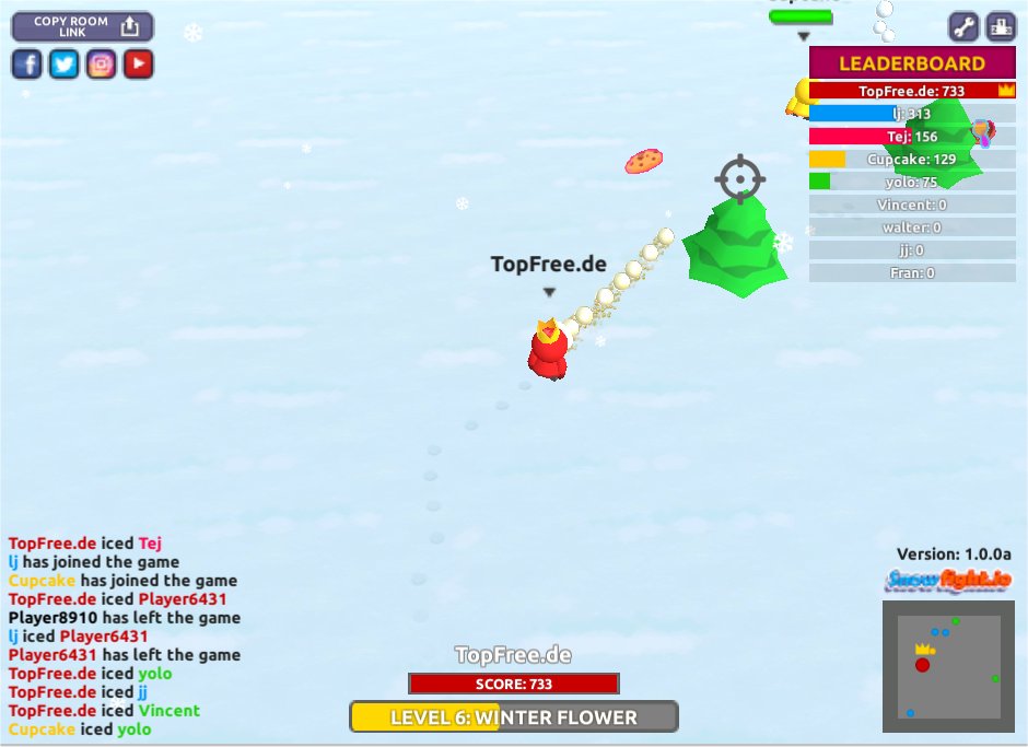 Juchu, es schneit! Wobei, zumindest bei mir draussen vor dem Fenster sehe ich nichts. Nichts von dem weißen Nass. Das kann von mir aus auch so bleiben, denn im heimischen Zimmer lässt sich auch ganz gut mit Schneebällen werfen. Zumindest virtuell im neuesten IO-Spiel: Snowfight.io. Hier bewerft ihr andere menschliche Mitspieler mit Schneebällen! Wuhu, was für eine Schlacht! Dazu gibt es noch zahlreiche Extras, die das Internet-Mehrspielerspiel über den Browser aufrunden.