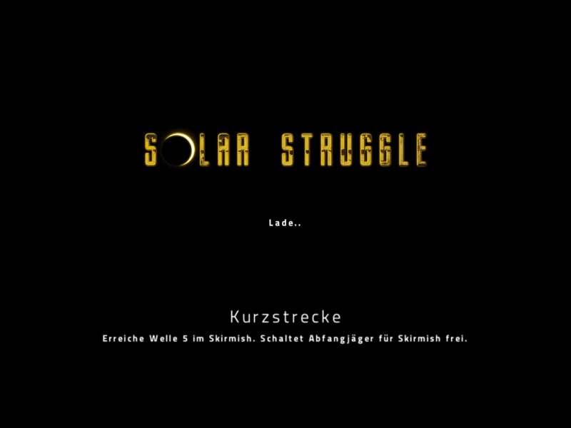 Solar Struggle (wörtlich übersetzt: Sonnen Kampf) lässt sich ausschließlich über den Jade:DS Clienten starten, denn das Spiel greift als eines der ersten Spiele auf der Plattform Little Indie auf die Archievements zurück. Der Spielstart erweist sich leider als recht langwierig, sodass der Ladebildschirm eine Weile auf dem Monitor in Erscheinung tritt, bis man endlich ins Hauptmenü gelangt. Leider stockt während des Ladens die Hintergrundmusik, aber eine Runde aus dem Fenster schauen soll ja auch gesünder für Augen sein.