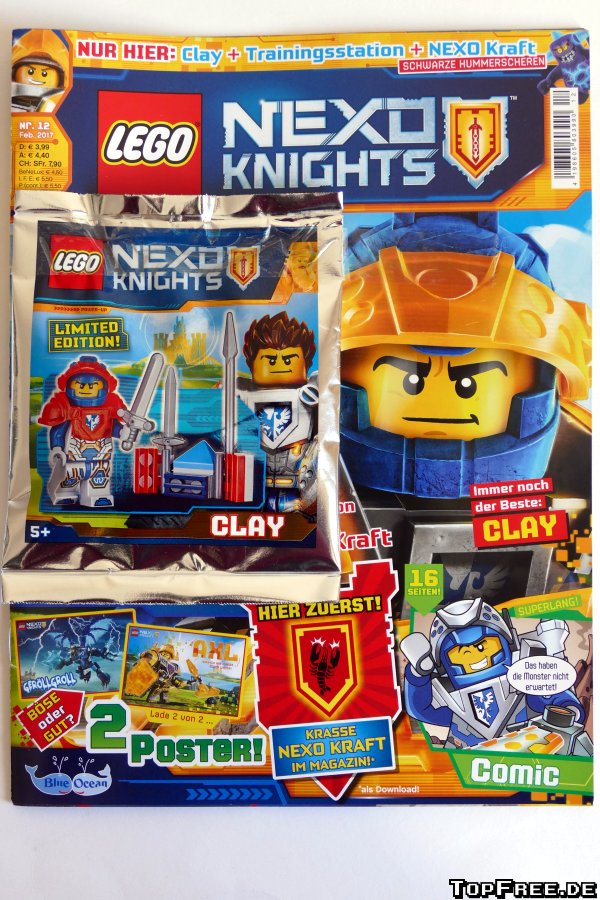 Über den Verlag Blue Ocean Entertainment aus Stuttgart stammen einige lizensierte Lego-Magazine. Lego City, Lego Elves, Lego Friends, Lego Ninjago, Lego Star Wars, Lego Nexo Nights. Dabei gibt es auch bei diesen eher an Kinder gerichteten Magazinen eine Beilage. Natürlich aus und von Lego. Damit unterscheiden sich die Gimmicks zumindest schonmal von anderen Heften mit Beilagen, die aus diversen und sich meist wiederholenden Plastikspielzeug bestehen. Beim Heft „Nexo Knights“ dreht sich alles um die gleichnamige Lego-Serie, die erst seit dem Jahr 2016 besteht.