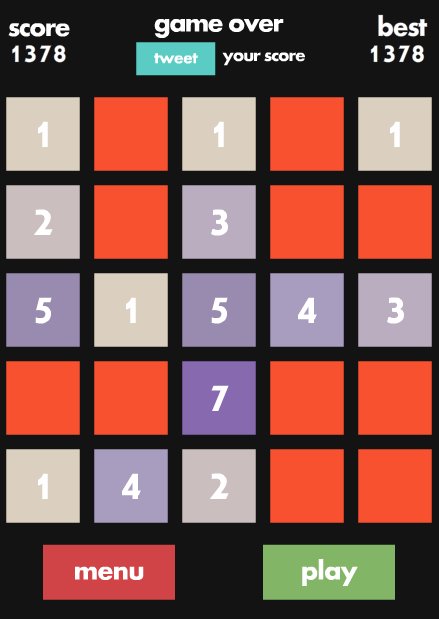Man braucht eine Weile, bis man den Dreh raus hat, aber dann wird das Spiel immer süchtigmachender, denn man will immer höhere Zahlen erreichen, bis der ganze 5×5-Block gefüllt ist und wie bei Tetris das Spiel zu Ende ist. Ein Denk-Mathe-Puzzle-Spiel, das die grauen Zellen fördert. Hat schonmal jemand die Zahl Fünfundzwanzig erreicht? Bitte um Screenshot!