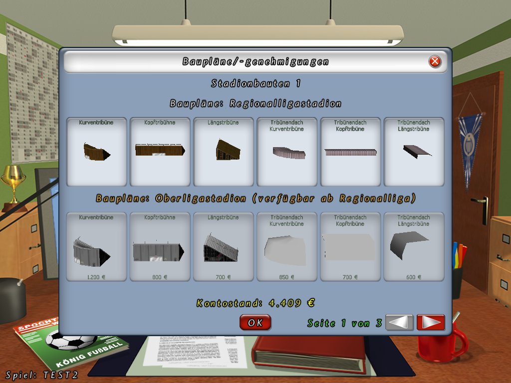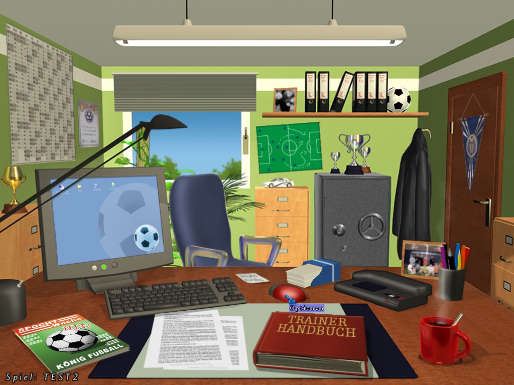 Man beginnt mit seinem Verein in der Verbandsliga und versucht bis in das Oberhaus aufzusteigen. Den Namen seines Teams und die der Spieler kann man dabei selbst festlegen. Allerdings wird den Spielern keine Position oder Stärke zugewiesen, sodass es vorkommen kann, dass ein ein Jens Lehmann im Spiel plötzlich ein Stürmer ist. Das Menü selbst besteht aus einem Büro, wo ein Klick auf das Telefon z.B. das Optionsmenü öffnet. Schnell hat man alle Funktionen gefunden und auch sein Stadion und Umfeld entdeckt. Für einen Manager ist die Optionsvielfalt allerdings recht mager ausgefallen, so kann man für sein Team nur das Training festlegen. Auch eigenartig: Beim Training kann man Standartsituationen trainieren, bei der Mannschaftsübersicht fehlt diese Eigenschaft jedoch völlig und stattdessen taucht der Punkt Reaktion auf, den man wiederum nicht trainieren kann. Eine Aufstellung und Taktik sucht man ebenfalls vergebens. Dafür gibt es die Möglichkeit Baugenehmigungen zu kaufen und mit diesen dann sein Stadion zu erweitern. Auch kann man Werbeverträge für sein Team abschließen.