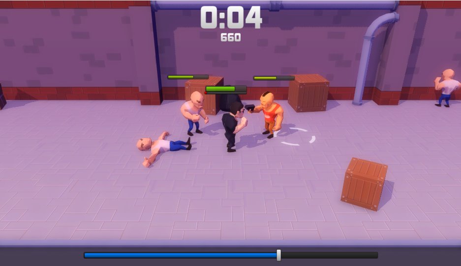 Mal wieder ein Ludum Dare-Spiel. Diesmal handelt es sich um ein Unity 3D-Actionspiel, bei dem du in die Rolle eines Geheimagenten schlüpfst. Um alle Gegner zu besiegen hast du allerdings nur eine Minute Zeit! Gesteuert wird mit WASD oder den Pfeiltasten sowie der Maus. Linkslink zum Kämpfen, Rechtsklick zum Ausweichen. Wobei der Rechtsklick im Browserfenster nevt, da dann immer das Unity-PopUp aufgeht. Aber wer muss schon den Schüssen ausweichen? Mit den Tasten 1 & 2 kann zudem noch die Waffe gewechselt werden.