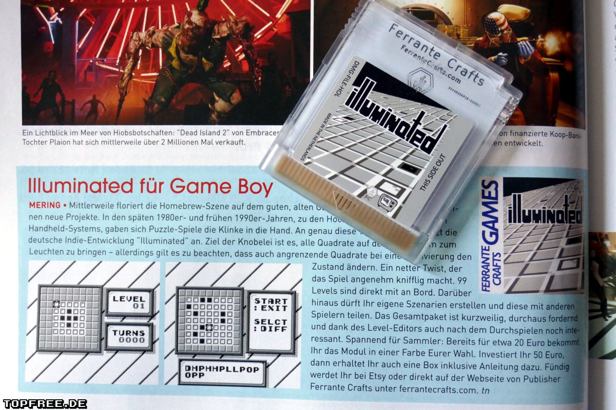 Die aktuelle Ausgabe der Videospielzeitschrift M! Games Ausgabe 359 hat zwei Artikel über Homebrew Game Boy Spiele intus. Beide davon habe ich als Modul.