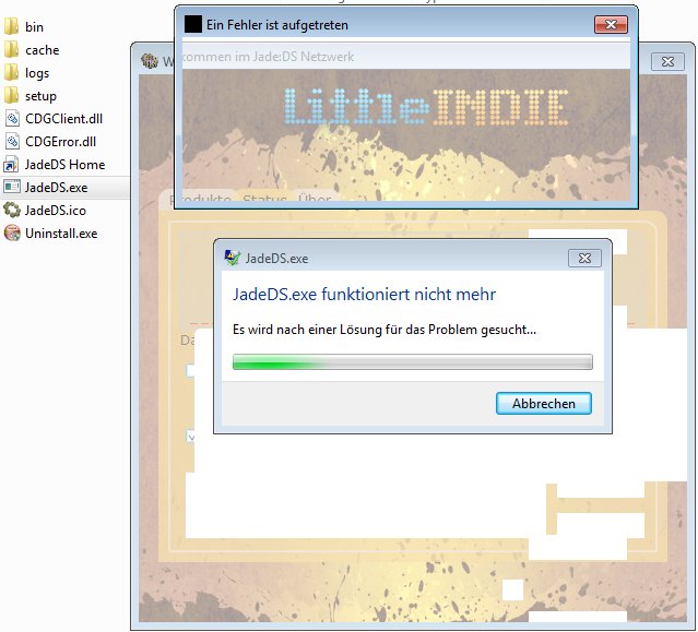 Heruntergeladene Spiele funktionieren noch, allerdings nur offline (Tutorial). Der JadeDS-Client stürzt beim Einloggen nämlich ab…