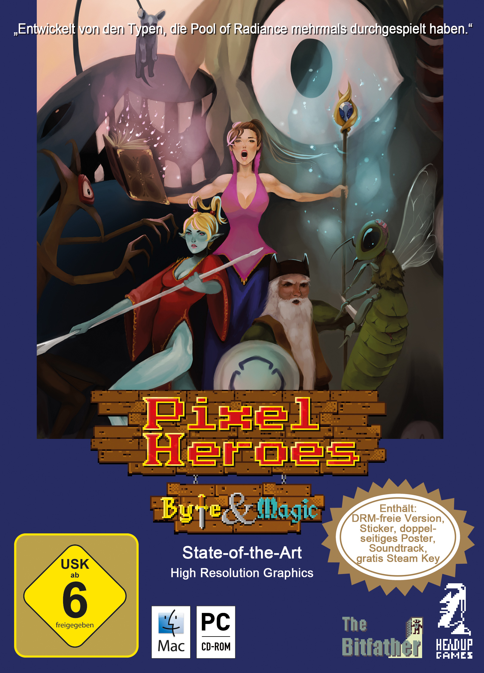 Düren, 14. Juli 2015 – Nach dem digitalen Erfolg des Retro-RPGs Pixel Heroes: Byte & Magic kündigt Headup Games heute die Limited Edition des urkomischen Vergangenheitstrips an. Ab dem 30. Juli 2015 werden genau 2000 Stück die Regale der Fachhändler verzieren – und zwar im passenden Outfit.