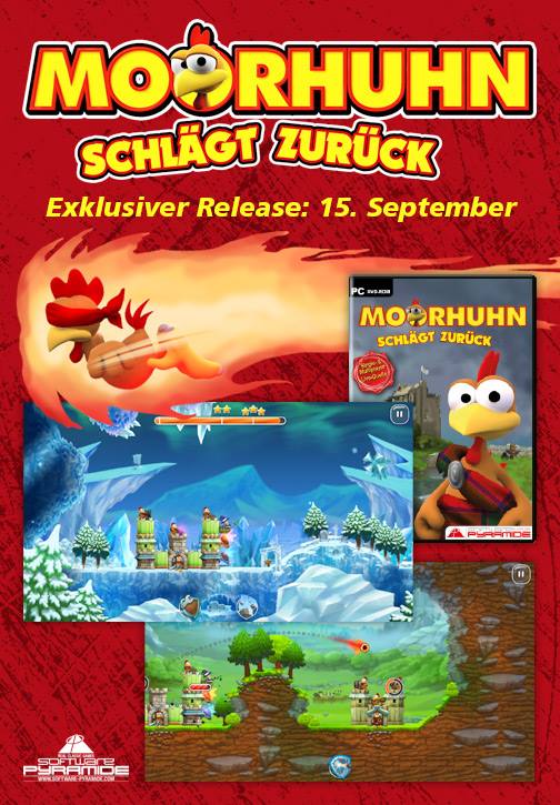 Die im Handel erhältliche Version von Moorhuhn schlägt zurück wird günstiger sein als die Variante zum Download. Aktuell kostet das Spiel zum Herunterladen bei Amazon.de 9,98 Euro. Mit Hülle und CD jedoch nur 4,99 Euro (Edit 06.09.16: Bei Amazon ist das Spiel schon erhältlich!) Also gerade einmal die Hälfte, trotz Verpackung und ohne Steam-Zwang. Der offizielle Preis des in der Software Pyramide erscheinendem Multiplayer-Artilleriespiels mit Cross-Plattform-Unterstützung liegt bei runden 5 Euro. Zu diesem Preis werdet ihr Moorhuhn schlägt zurück auch ab dem 15. September 2016 im Handel finden.