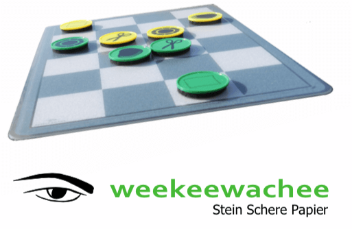 weekeewachee ist ein kleines Brettspiel für zwei Spieler, das sehr an Schach erinnert, aber auf den Stein-Schere-Papier-Regeln basiert. Eine Partie dauert dabei nur zwei bis fünf Minuten. Die Macher Boris Bedarf (Idee und Entwicklung, Grafikdesign), Andreas Blume (Marketing, Buchhaltung) und Michael Tamm (Programmierer der weekeewachee-App) bieten ihr Gesellschaftsspiel jetzt auch auf Startnext an. Via Crowdfunding sollen die Verpackung und die Spielsteine verbessert sowie Turniere finanziert werden. Bei noch zwei Wochen Zeit und nur drei Unterstützern, sieht das Finanzierungsziel von 4.200 Euro jedoch in weite Ferne gerückt …