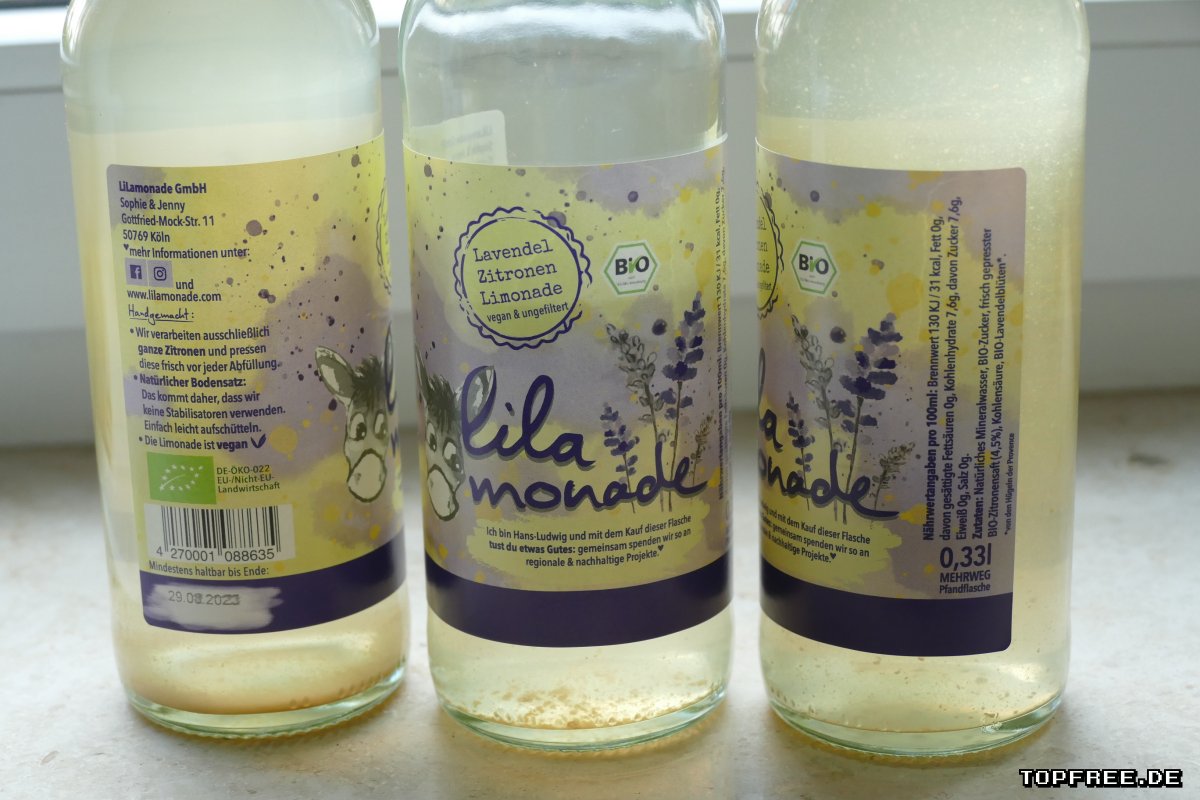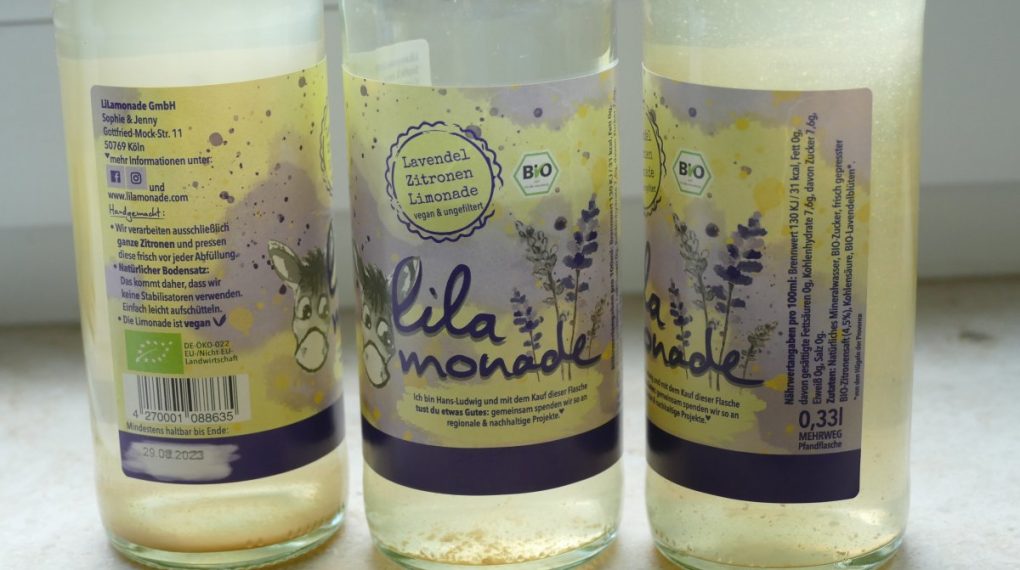 Lilamonade. Das ist doch mal ein Limonaden-Name. Natürlich mit einem lila Etikett. In der Sorte Lavendel-Zitrone gab es diese Sorte im Bio-Laden um die Ecke. Schmeckt das?