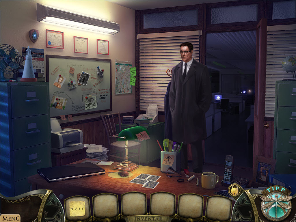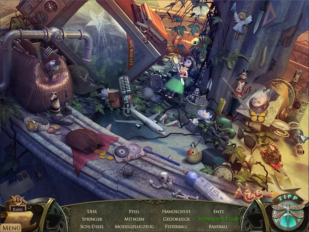 Die WBS sind gut zu lösen und mit interaktiven Gegenständen ausgestattet. Haben wir das Suchbild erfolgreich hinter uns gebracht, bekommen wir wie gewöhnlich einen Gegenstand in die Inventarliste. Diese Liste verschließt sich automatisch, läßt sich aber auch so einstellen, das sie geöffnet bleibt – ich hab das z.B. ganz gerne. Dieses „auf und zu“ nervt mich nämlich immer. Der Tippbutton lädt sich schnell auf und hilft recht gut weiter, aber einmal hat mich der Tipp auf eine Tür hingewiesen, wofür ich aber noch keinen Schlüssel hatte.