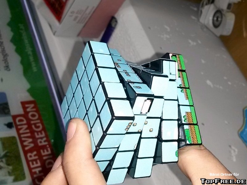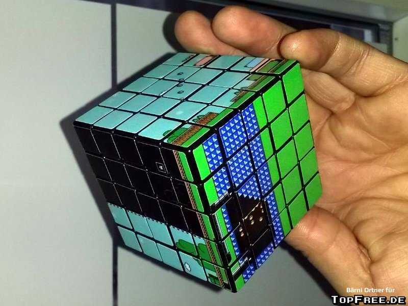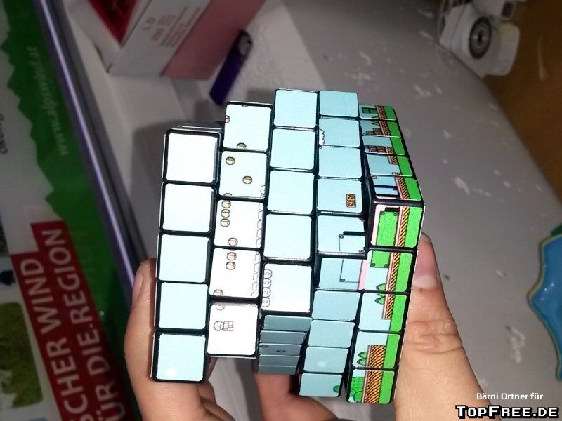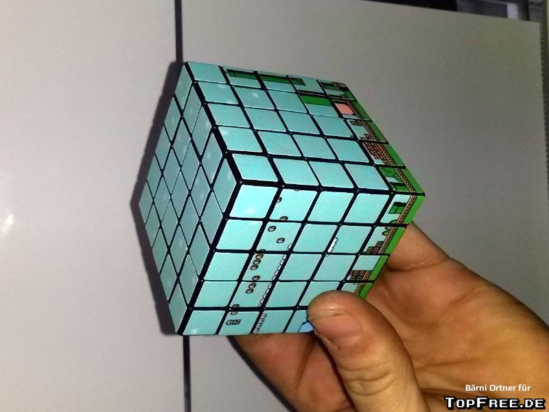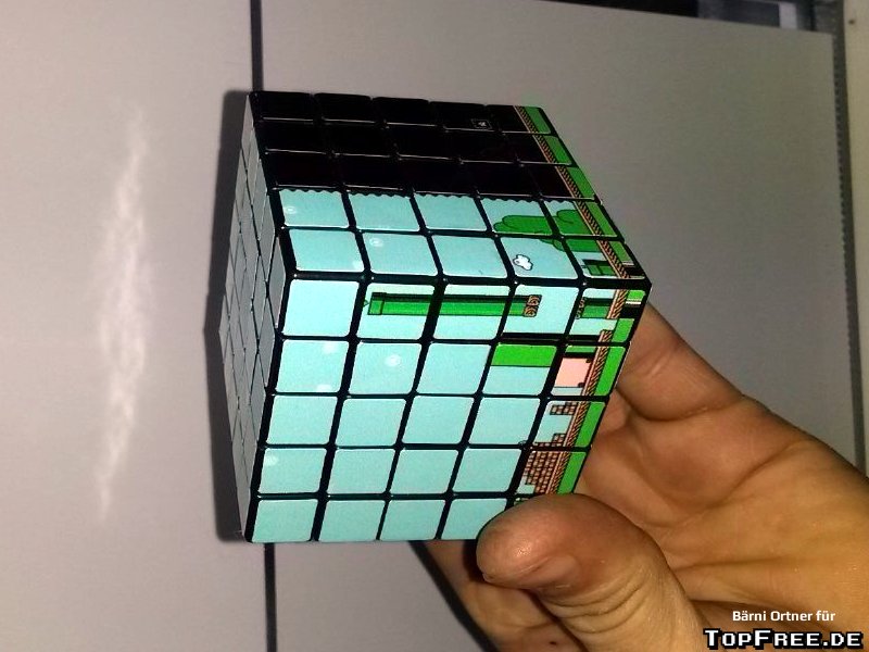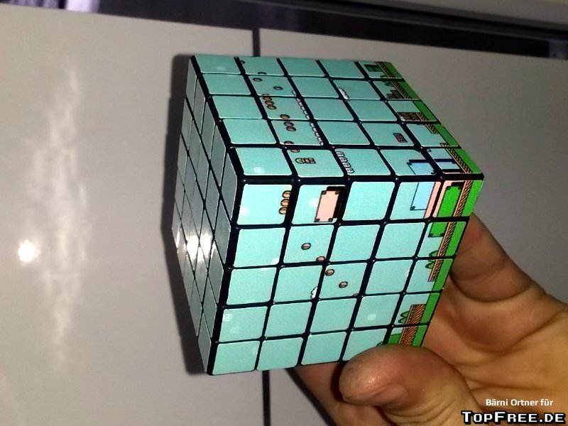 Was macht man mit einem komplett schwarzen Zauberwürfel? Na, selber gestalten! „Das Zauberwürfel Kunstprojekt“ nannte sich die von getDigital ins Leben gerufene Aufgabe. Denn der Lieferant hatte einfach mal 200 unbedruckte schwarze Rubik’s Cube ähnliche Würfel geliefert. Also gingen die Dinger für ein Euro (3 Stück) raus. Bärni Ortner hatte die Idee, dass man damit doch eine Super Mario Welt gestalten könnte. Würfel gedreht und schon sieht die Welt anders aus.