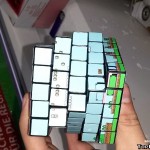 Mit einem Vektorprogramm hatte sich Bärni ein Raster gebaut. Die kleinen Quadrate entsprechen dabei einer bestimmten Länge. „Danach habe ich einen Hintergrund, hier Super Mario, daraufgelegt, rasterisiert und auf Klebefolie ausgedruckt“, so Bärni. „Das Ganze noch laminiert, die Quadrate ausgeschnitten und aufgeklebt“. Fertig! Hin- und hergedreht kommen immer wieder neue Super Mario Welten dabei heraus. Der Würfel soll demnächst bei getDigital zu einem guten Zweck versteigert werden. „Ich werde auch die nächsten Tage einen weiteren basteln: Pac-Man.“