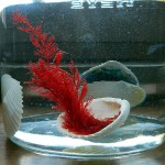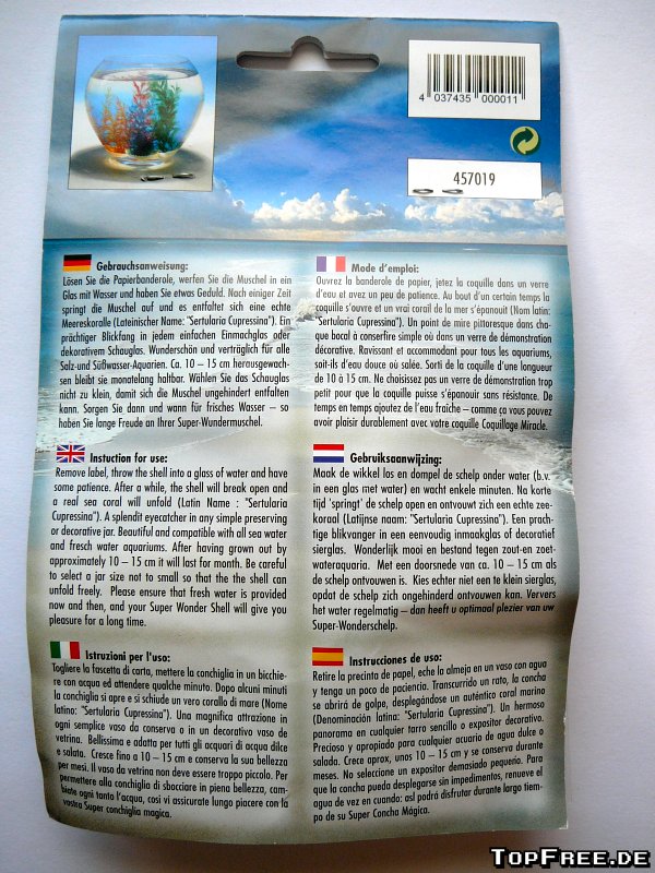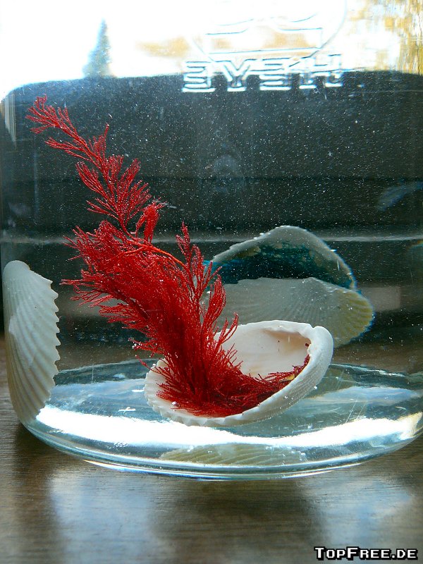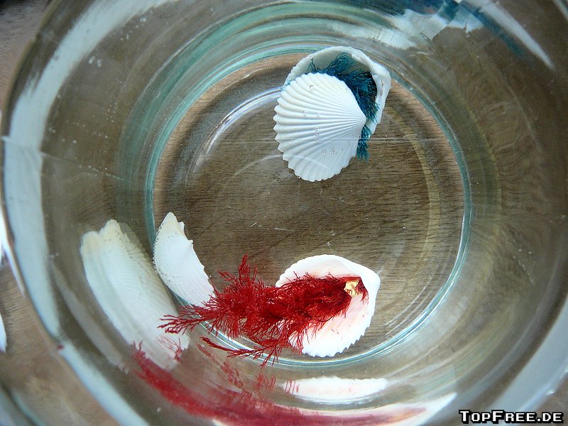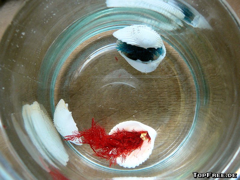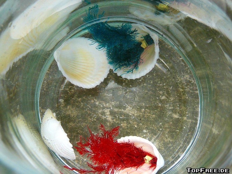 Die Super-Wundermuschel kann dabei in jede Art von Wasser gesetzt werden, denn die Koralle saugt sich einfach damit voll und entfaltet sich. Das Ganze dauert nach dem Einsetzen ins Wasser nur wenige Minuten. Die Muschel geht auseinander, oder ist vorher schon auseinander gefallen, denn laut Verpackung soll man diese einfach ins Wasser werfen (!), und die Koralle wird größer. Wobei ich das „groß“ jetzt nicht wirklich betonen kann, denn die knapp 10 cm sind nicht wirklich groß. Immerhin stimmen die Farben und es sieht ganz schick aus. Danach bleibt die Super-Wundermuschel einfach im Glas und verweilt sein tristes Dasein im Wasser.