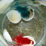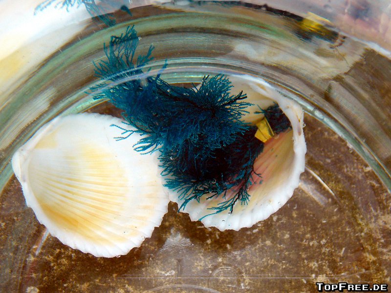 Die Muscheln in der Plastikhülle sind mit einem farbigen Band, der Farbe des Seemos im Wasser, umklebt. Die Meereskoralle gibt es in Rot, Grün, Blau und Gelb sowie als Black Edition mit Perle und ist einfach eingefärbt worden. In getrocknetem Zustand ist die Wundermuschel quasi unendlich lang haltbar.