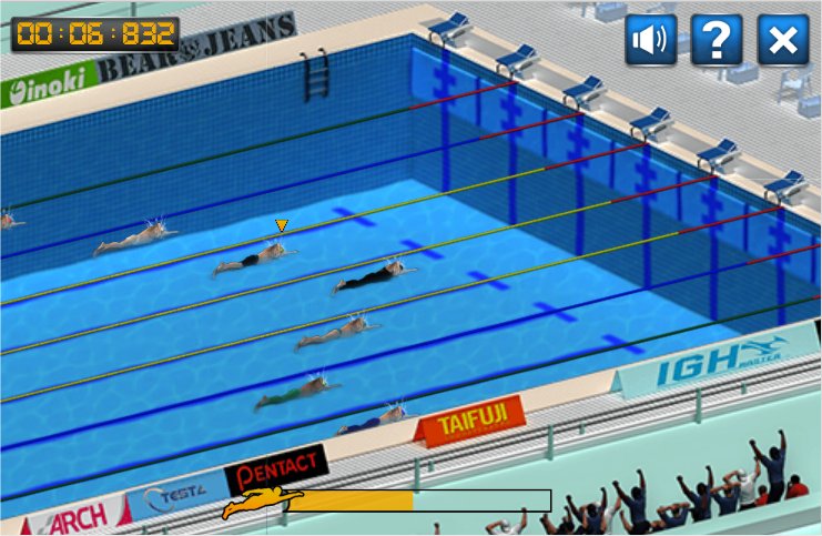 Das Wetter wird schön(er) und macht Lust auf … eine Runde schwimmen! Geht ja auch im Hallenbad. 100 Meter, 200 Meter oder doch direkt die 400 Meter-Bahn? In gewohnter Leichtathletik-Manier wird mit den Pfeiltasten links und rechts geschwommen, die abwechselnd gedrückt werden müssen. Aber Achtung: Irgendwann geht dem Schwimmer die Puste aus! Je nach Platzierung gibt es Medaillen und Siegprämie. Nach und nach werden zudem weitere Städte freigeschaltet. Natürlich wird es immer schwieriger! Deswegen ist Swimming Pro gar nicht so einfach zu meistern, zudem leider der aktuelle Spielstand nicht gespeichert wird.