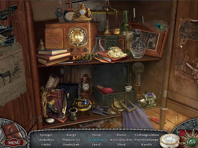 In diesem Spiel stehen drei Modi zur Auswahl, die während des Spiels modifizierbar sind. Die Wimmelbildszenen sind in interaktive Wortsuchlisten und Umrisssuchen gestaltet worden. Oftmals wird man mehrere Gegenstände erhalten, die sich teilweise zusätzlich noch kombinieren lassen. Eine Karte gibt es nicht, da man sie auch nicht brauchen wird. Der Tipp ist schlecht, er hilft nicht wirklich und zeigt Bereiche an, die ich noch nicht vollständig lösen kann. Puzzles und Minigames sind einfach, wenn man denn dann mal die zugehörigen Teile zusammen hat, die den aktiven Bereich freischalten. Immer mal wieder werden Filmsequenzen gezeigt, die zur Spannung beitragen und dem Spiel Inhalt verleihen.