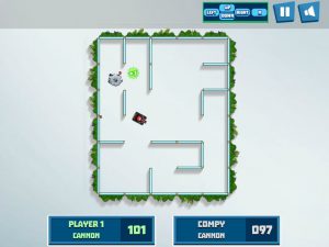 Auf dem Spielfeld angekommen, schaut man aus der Vogelperspektive auf seinen kleinen (grünen) Panzer. Durch eine Art Labyrinth, dass sich jede Runde verändert und mal größer mal kleiner ist, wird dann mit den vorher festgelegten Tasten gesteuert. Dazu gibt es eine Feuertaste, um Kanonen abzuschießen. Punkte gibt es jeweils dafür, wenn man den Gegner trifft oder verschiedene Extras auf dem Schlachtfeld einsammelt. Bevor man das erste Mal einen Schuss abfeuert sollte man wissen: Die Kugeln prallen von der Wand ab! So kann man sich mit seiner eigenen Kugel auch mal selbst eliminieren. Nicht nur dadurch, ist es gar nicht so einfach den Gegner zu besiegen. Sein volles Potential erreicht das Mini-Spiel allerdings, wenn man zu mehreren an einem Computer sitzt. Was allerdings fehlt in der heutigen Zeit, wäre ein Online-Multiplayermodus. Der würde das Spiel tatsächlich aufwerten.