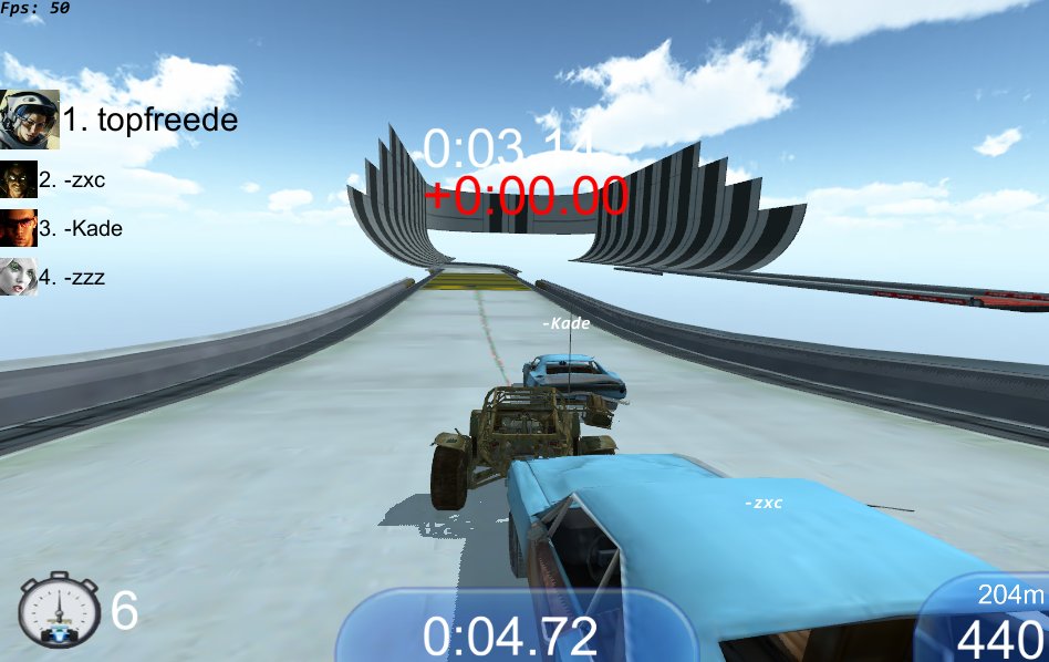 Nachdem das knapp 5 MB große Spiel geladen ist, kann man sich entweder kostenlos registrieren oder als Gast spielen und eins der vorhandenen Profilbilder auswählen. Wenn die Map und das Auto, zunächst steht nur eins zur Verfügung – es gibt sogar einen dicken Panzer –, ausgewählt wurde, können weitere Spieloptionen gewählt werden. Online, 2 Player, gegen ein Freund, dessen Nickname man kennt, oder der Replaymodus, ebenfalls gegen einen vorher bekannten Benutzernamen, den man eingeben muss. Als Schwierigkeitsgrad stehen Leicht, Mittel und Schwer zur Auswahl.