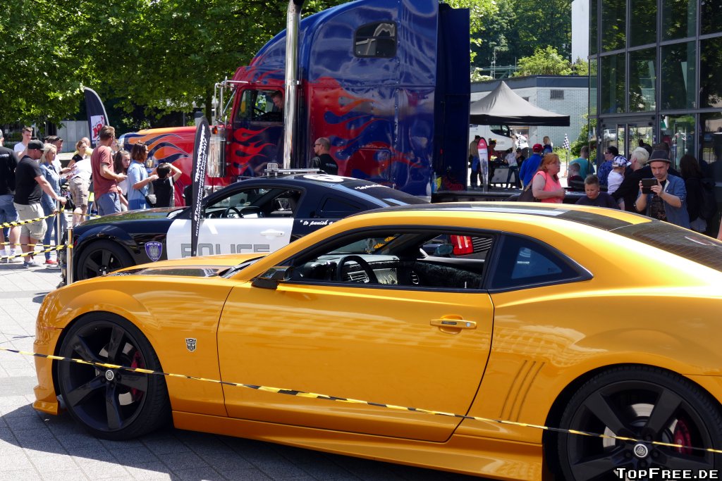 Der Truck Optimus Prime, der gelbe Waagen Bumblebee und das Police-Auto Barricade gibt es zu begutachten und fotografieren. Wer allerdings Transformers-Figuren erwartet hat, wird enttäuscht. Es stehen lediglich die Autos als Nachbauten zur Ansicht bereit. Zwischendurch wird mal der Motor angeschmissen und hartgesottene Fans zücken ihr Smartphone und … drehen ein Video vom Motorengeräusch. Mir persönlich hätten definitiv große Transformers-Figuren besser gefallen. Auto- und Transformers-Fans werden wohl auch an den „echten“ Waagen einen Gefallen finden, doch das bessere Fotomotiv hätte mit Sicherheit eine große Figur von Transformers hergegeben. Wenigstens eine.