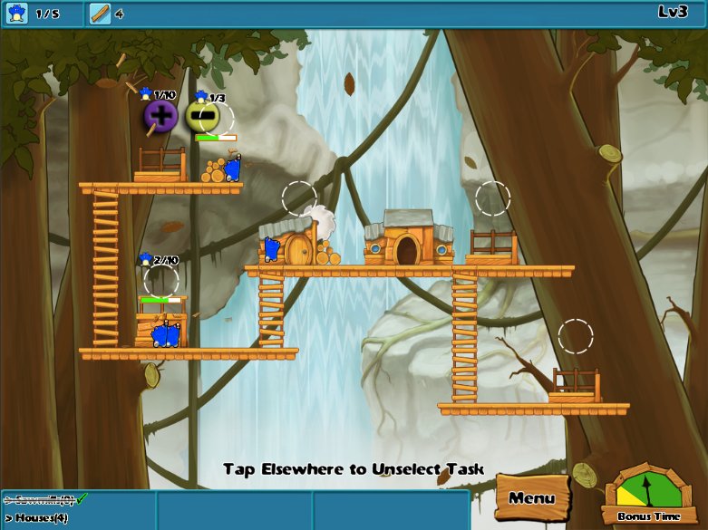 Das Spiel ansich ist eine Art Strategie-Aufbau-Klick-Spiel. Die blauen Wesen wuseln auf den Plattformen rum und bauen. Ein klassisches Casual Game, bei dem man immer wartet, dass das nächste fertig gebaut wurde. In der GameStick Zone kostet das als Puzzle definierte Spiel 2,99 Euro.