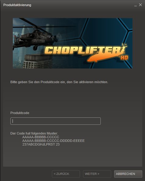 Die Installation eines Spiels aus dem normalen Handel, das Steam zur Installation voraussetzt, stelle ich an dieser Stelle anhand von „Choplifter HD“ in einer Bildreihe vor: