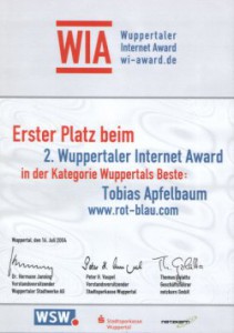 – 1. Platz beim 2. Wuppertaler Internet Award in der Kategorie „Wuppertals Beste“ für Rot-Blau.com
