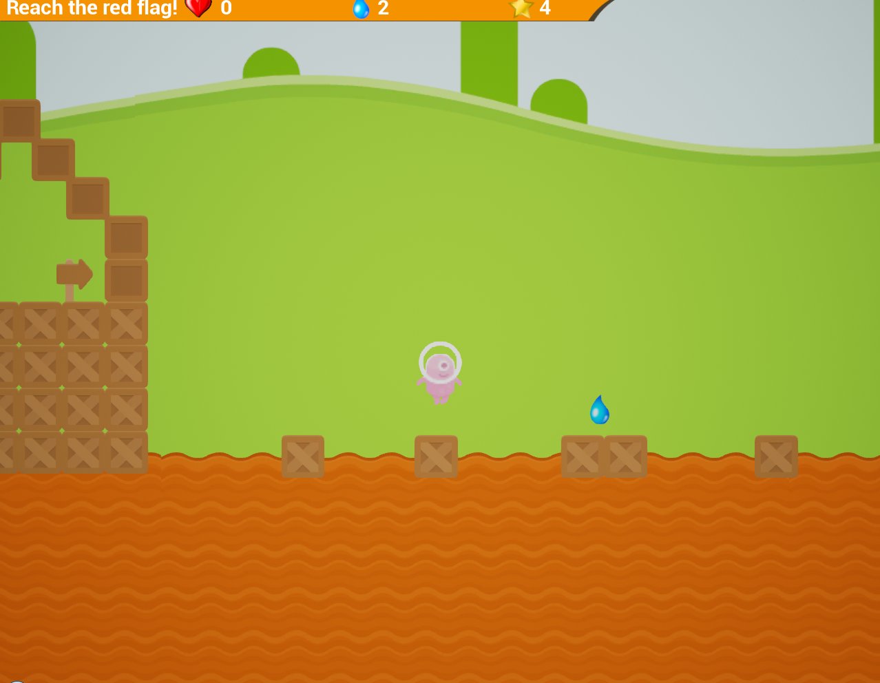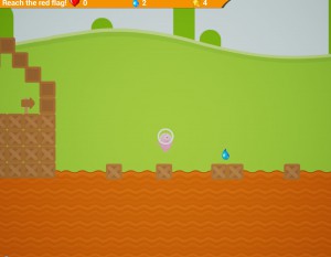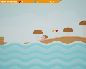 Gesteuert wird mit den Pfeiltasten, es handelt sich um ein klassisches Jump ’n‘ Run. Oben befindet sich die Anzahl der noch vorhandenen Herzen, Wassertropfen und Sterne, die eingesammelt werden können für eine Punkteliste. Wieder einmal leider ruckelt UP und die Steuerung ist sehr unpräzise. Ich mag kleine Jump ’n‘ Run-Spiele wirklich sehr! Aber der Ersteindruck bestätigt leider: Tom-Oliver hat seine Programmierkenntnisse getestet.