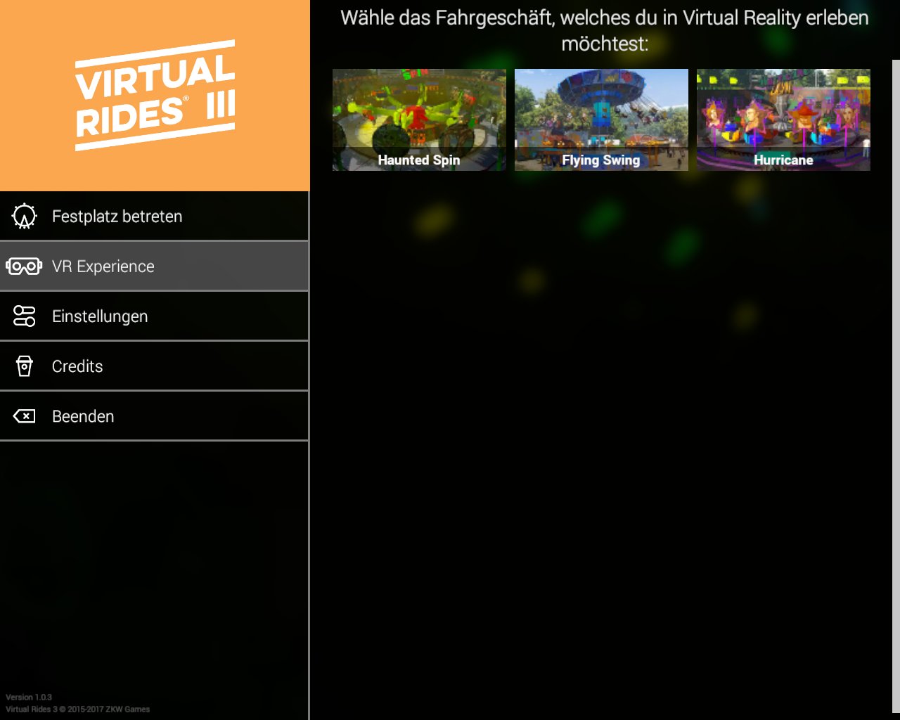 Definitiv sollte man über einen guten Rechner verfügen. Bei älteren PCs schraubt man die Grafikeinstellungen runter, dann geht allerdings auch einiges an Spielspaß verloren, denn Virtual Rides 3 lebt von den Effekten. Wer ein HTC Vive besitzt, kann drei Fahrgeschäfte (Haunted Spin, Flying Swing und Hurrican) auch in Virtual Reality Modus erleben. Leider hatte ich auch ein paar Abstürze. Wenn die Grafikeinstellungen bei älteren PCs zu hoch eingestellt sind, landet man einfach mal auf dem Desktop. Dann gibt es zwar die Möglichkeit den Absturzbericht an die Entwickler zu senden – hilft einem aber zunächst auch nicht weiter.