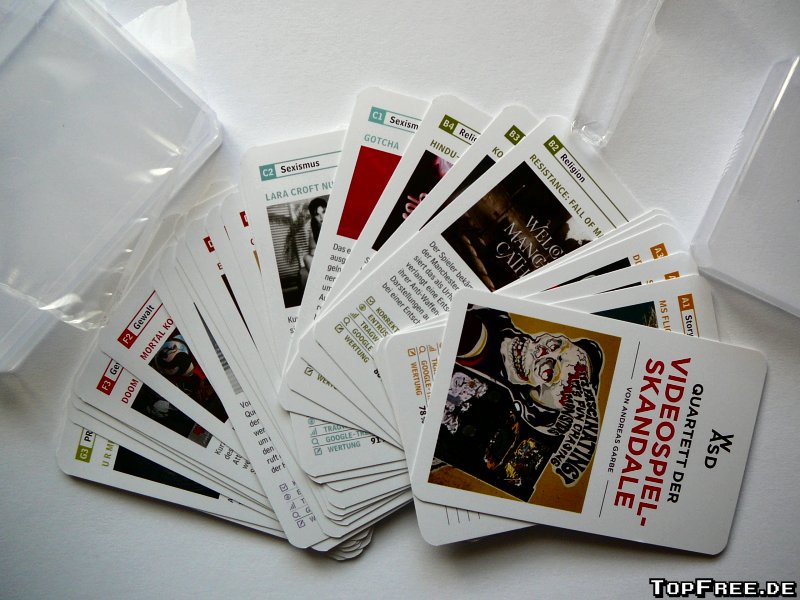Das neue WASD Quartett „Videospiel-Skandale“ von Andreas Garbe ist ab sofort (online) erhältlich. Die klassischen 32 Karten sind mit allerhand Skandälchen, aufgeteilt in acht Kategorien, aus den vergangenen Jahren bedruckt. Dabei kann die Variante Supertrumpf mit zwei oder mehr Spielern gespielt werden. Hierfür gibt es acht unterschiedliche Kategorien, nach denen abgefragt werden kann. TopFree.de hat das „WASD Quartett der Videospiel-Skandale“ mal unter die Lupe genommen und stellt kostenlos eine Anleitung zum Herunterladen zur Verfügung.