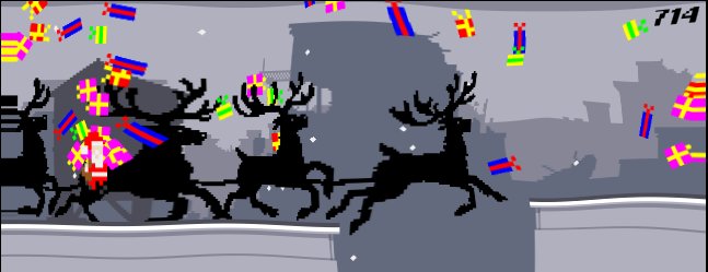 Die Geschenke sind in Gefahr! Vor allem dann, wenn DU den Sprung nicht schaffst. Gesprungen wird mit der Leertaste. Wer schafft die höchste Punktzahl? Online spielen unter information-superhighway.net/santabalt.