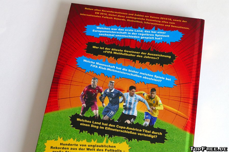 Nach dem Guinness World Records 2017 und der Gamer’s Edition folgt jetzt noch ein weiteres neues Rekordbuch: Welt-Fußball-Rekorde 2017. Das Rekordbuch rund um den (Welt-) Fußball aus dem Verlag arsEdition. Mit aktuellen Zahlen und Fakten zur Europameisterschaft 2016 sowie weiteren Rekorden rund um die Welt und den Nationalteams. Im Hardcover mit 256 Seiten bunt bedruckt.