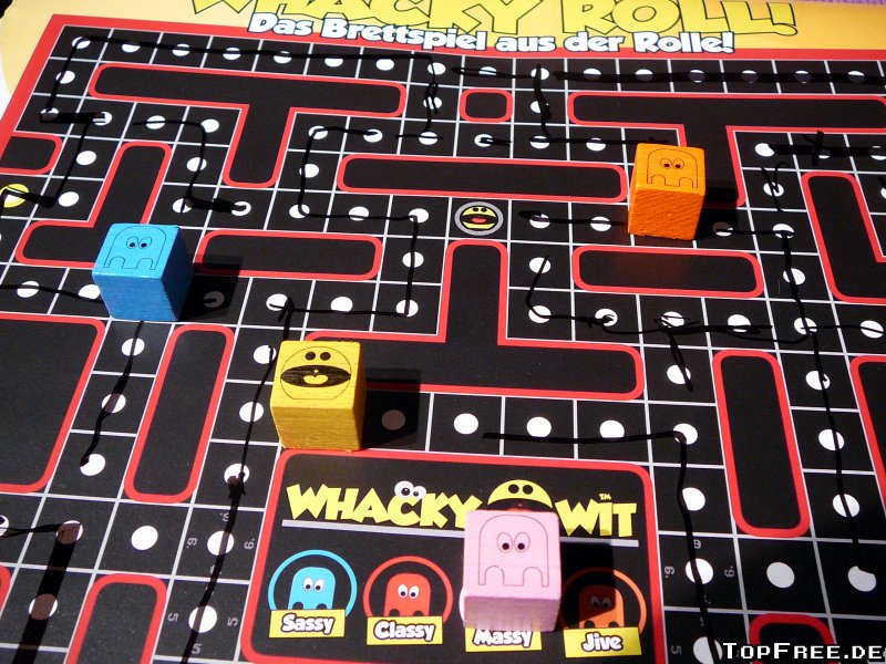 Nach Whacky Wit – Das Brettspiel gibt es jetzt auch die günstigere und mobilere Variante. Whacky Roll: Das Rollen-Spiel ist kein Rollenspiel, sondern Das Brettspiel aus der Rolle. Das Spielprinzip orientiert sich an ein sehr bekanntes Computerspiel aus den 80er Jahren. Der gelbe Whacky ist auf Punktejagd, während Sassy, Classy, Massy und Jive versuchen Whacky aufzuhalten. Gespielt wird zu zweit. Einer spielt die Monster, einer sammelt die Punkte ein. Ein perfektes Spiel für Gelegenheitsspieler zum Mitnehmen? TopFree.de hat das Spiel unter die Lupe genommen … oder eher ausgerollt!