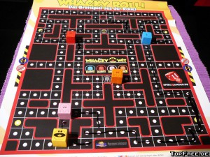 Fazit: „Whacky Roll: Das Rollen-Spiel“ von Norman Sommer –„Made in Spring“, hergestellt in Deutschland – ist ein wunderbar transportables Spiel. Die Rolle ist überall hin mitnehmbar und ich habe damit eigentlich nur auswärts gespielt. Für Pac-Man Fans ist Whacky Roll ein Muss. Aufgrund des Wiedererkennungswertes werden Computerspielfans ihre helle Freude daran haben. Für Gelegenheitsspieler bestens zum Mitnehmen und für ein Spielchen zwischendurch geeignet. Die Regeln sind so simpel wie das Videospiel. Die Standardedition kostet 24,95 Euro, die Magnet Edition 29,95 Euro. Damit geht auch das Preis-Leistungs-Verhältnis in Ordnung, wenn man bedenkt, dass der große Bruder „Whacky Wit“ fast 400 Euro kostet.