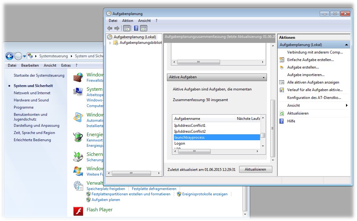 Unter Windows 7: Start -> Systemsteuerung -> System und Sicherheit -> Verwaltung -> „Aufgaben planen“ anklicken. Dort in der „Aufgabenplanung (lokal)“ im mittleren Fenster runterscrollen und „launchtrayprocess“ doppelt anklicken. In der Rechten Spalte kann der Prozess dann wahlweise deaktiviert oder dauerhaft gelöscht werden.