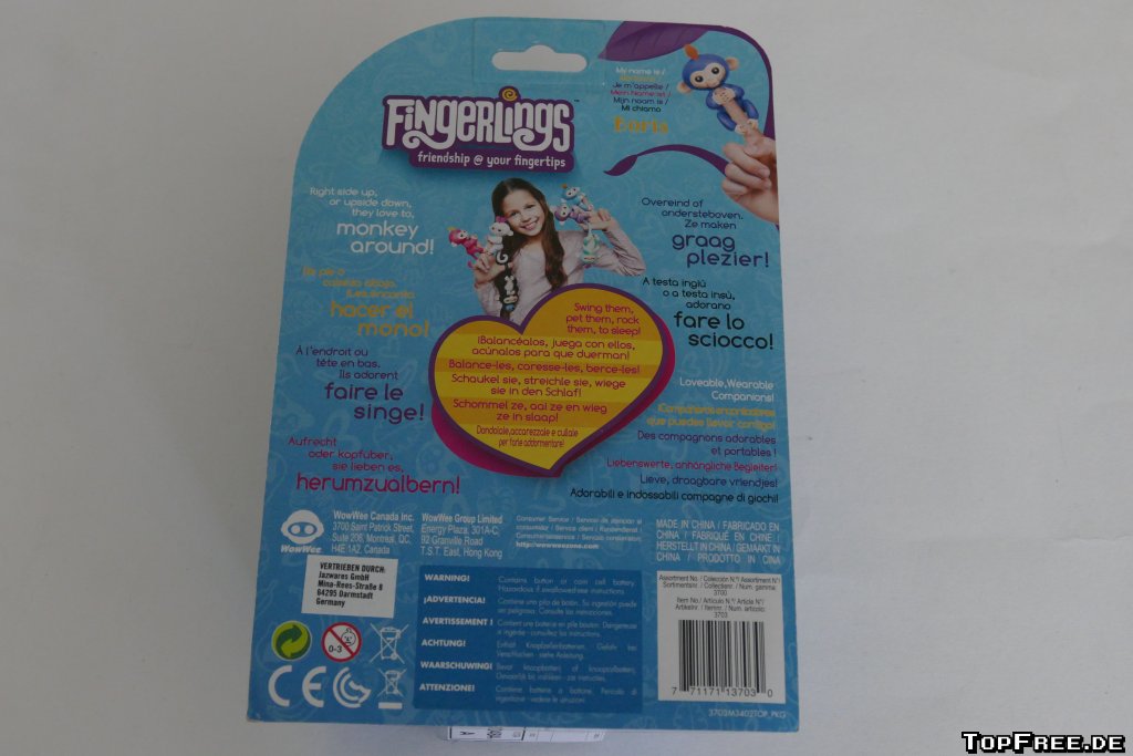 Vorab war mir wichtig, dass ich auch einen original Fingerlings erwische. Alleine bei Amazon.de tauchen in den Rezensionen nämlich Bilder auf von nachgemachten Duplikaten. Also billigen Nachahmungen aus Asien der Fingerlings. Original sind sie nur von WowWee, vertrieben von Jazwares.